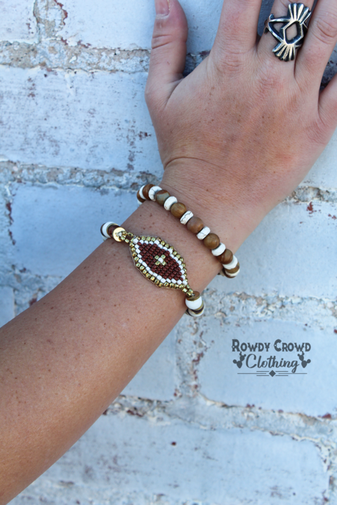 Pictured with https://betruewestern.com/collections/new-arrivals/products/beach-bum-brown-toned-stretch-bracelet