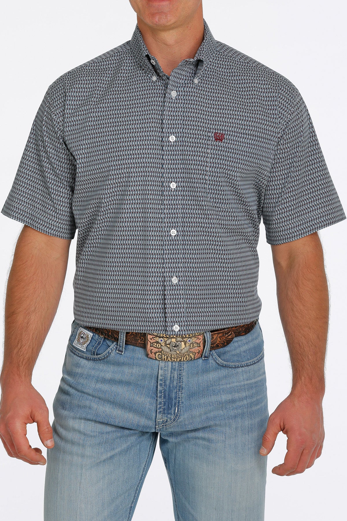 Cinch Short Sleeve Grey/Green/Burgundy Button Up