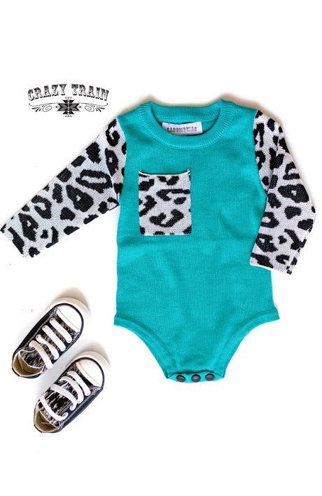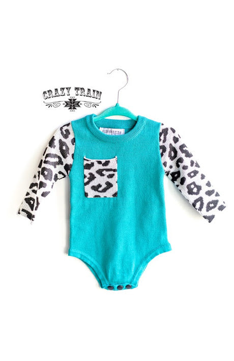 Crazy Train Frankly My Dear Turquoise and Leopard Knit Onesie
