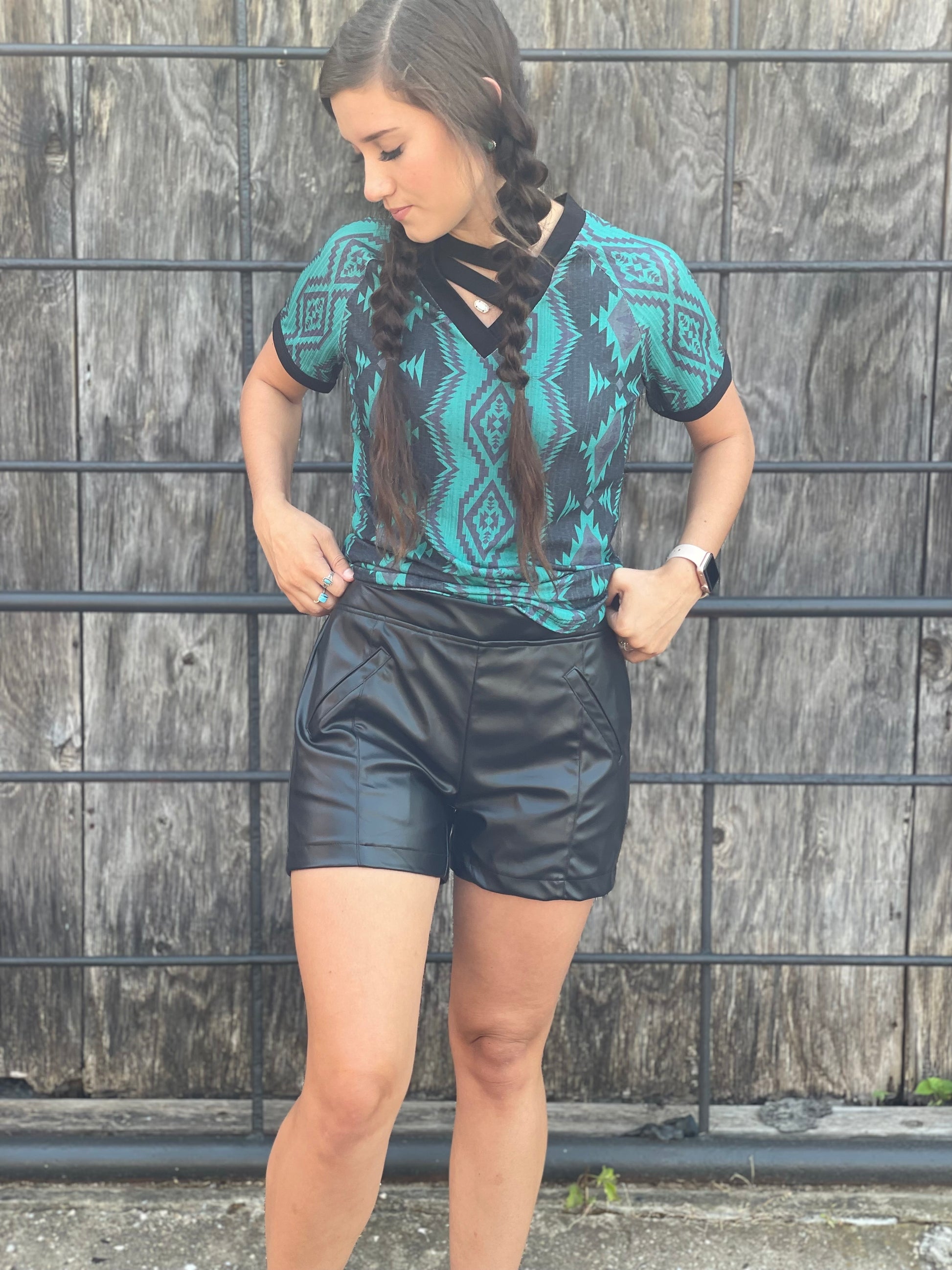 Crazy Train Sassy Side Black Faux Leather Shorts