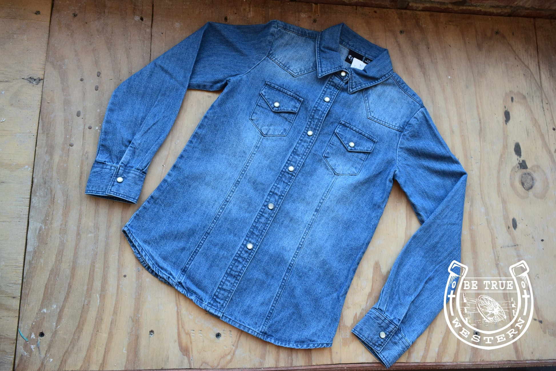 Girls Denim Long Sleeve Button Down by Cruel Girl