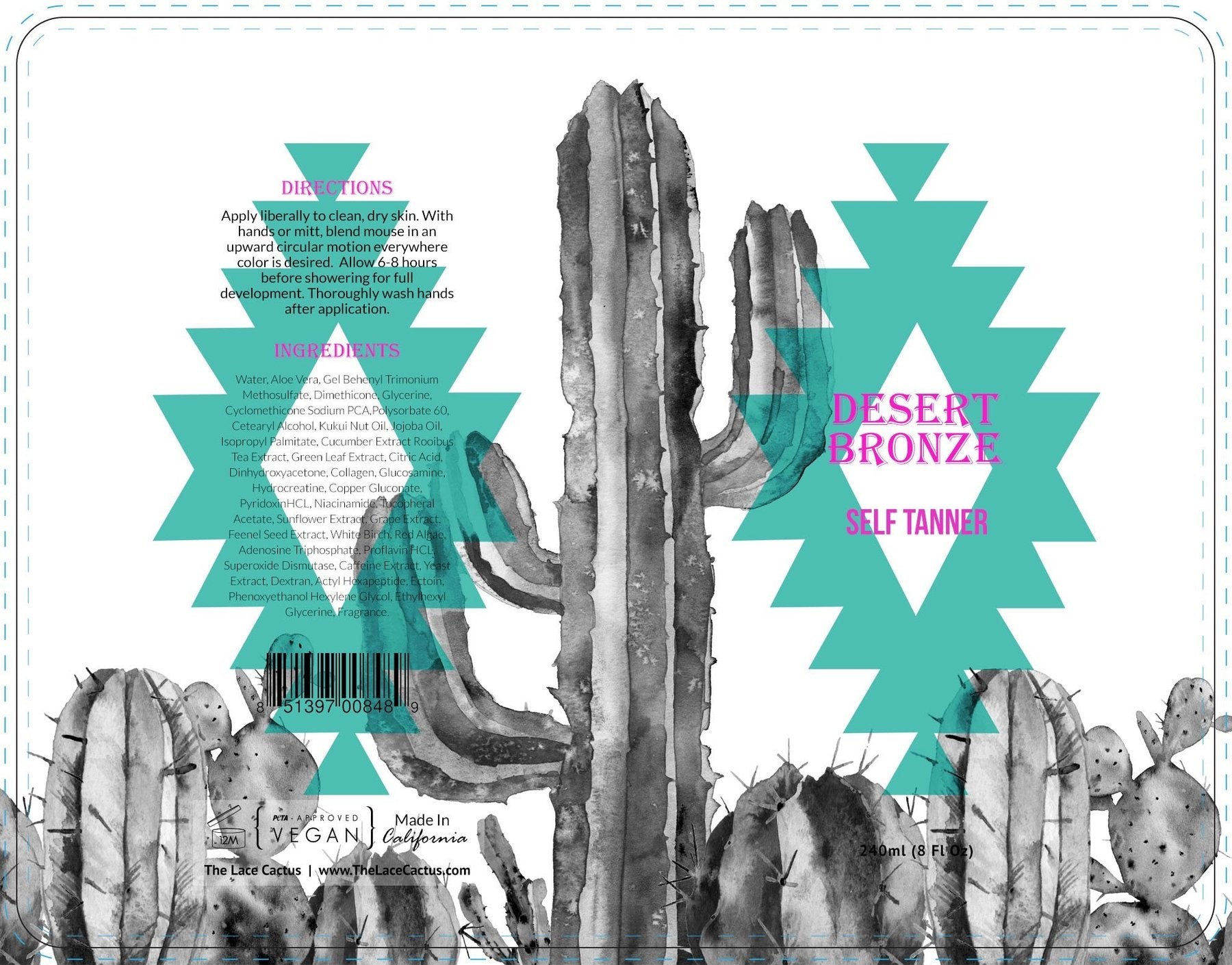 A: Desert Bronze is one of very few self tanning products that is 100% Vegan, organic and PETA approved. No harmful additives!