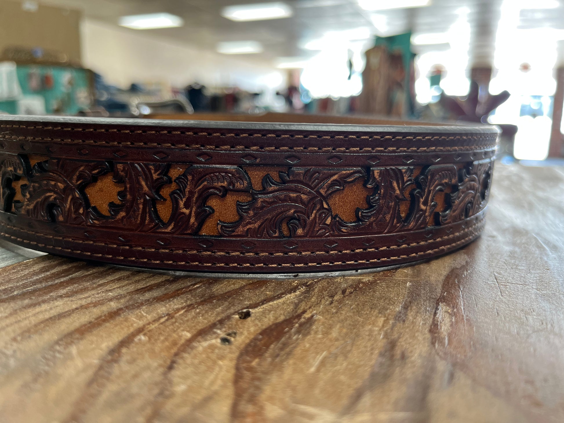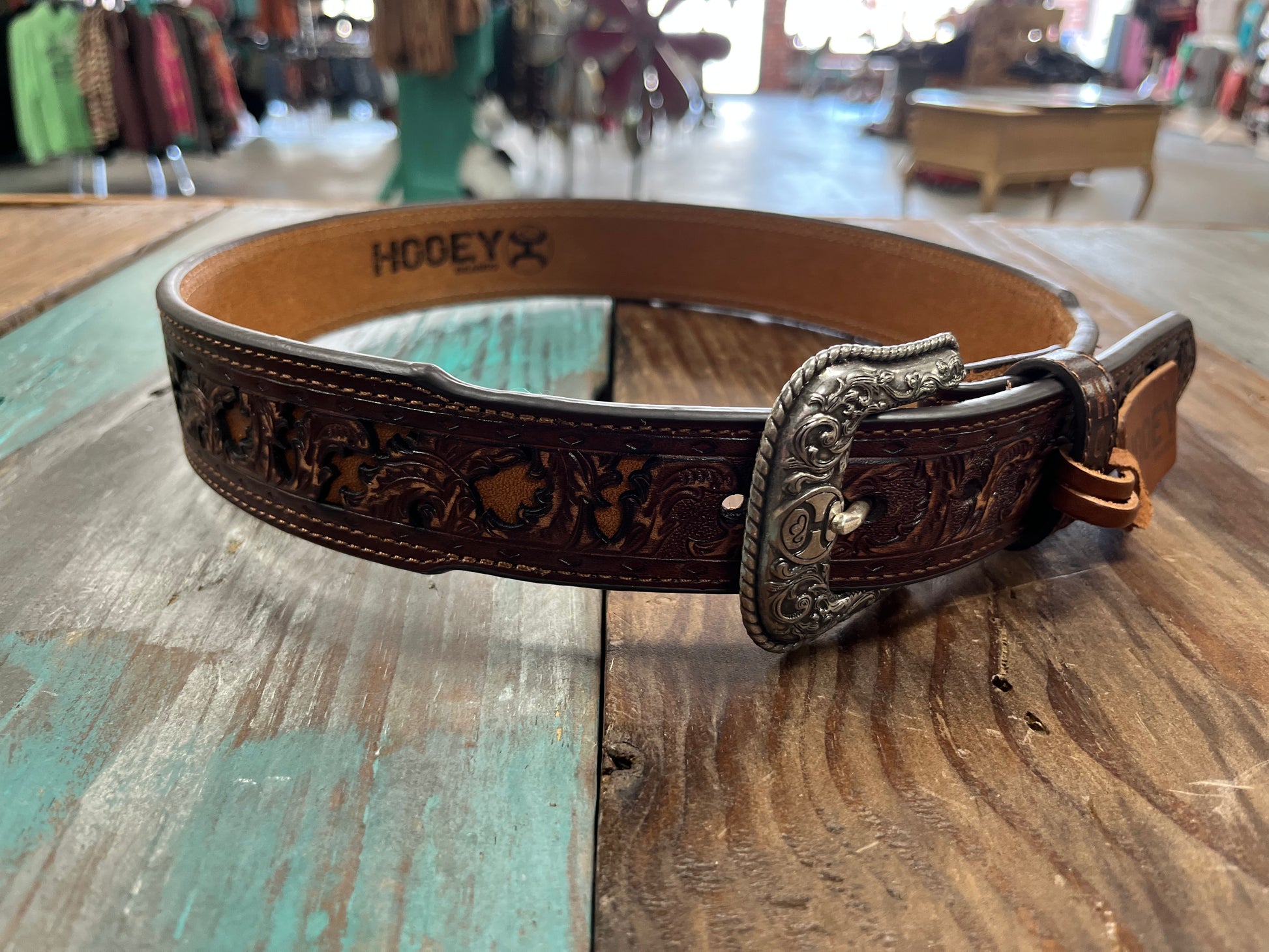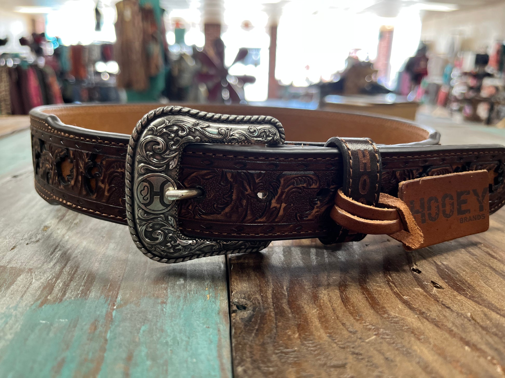 Hooey Western Mens Belt Leather Tooled Cutout Brown/Brown