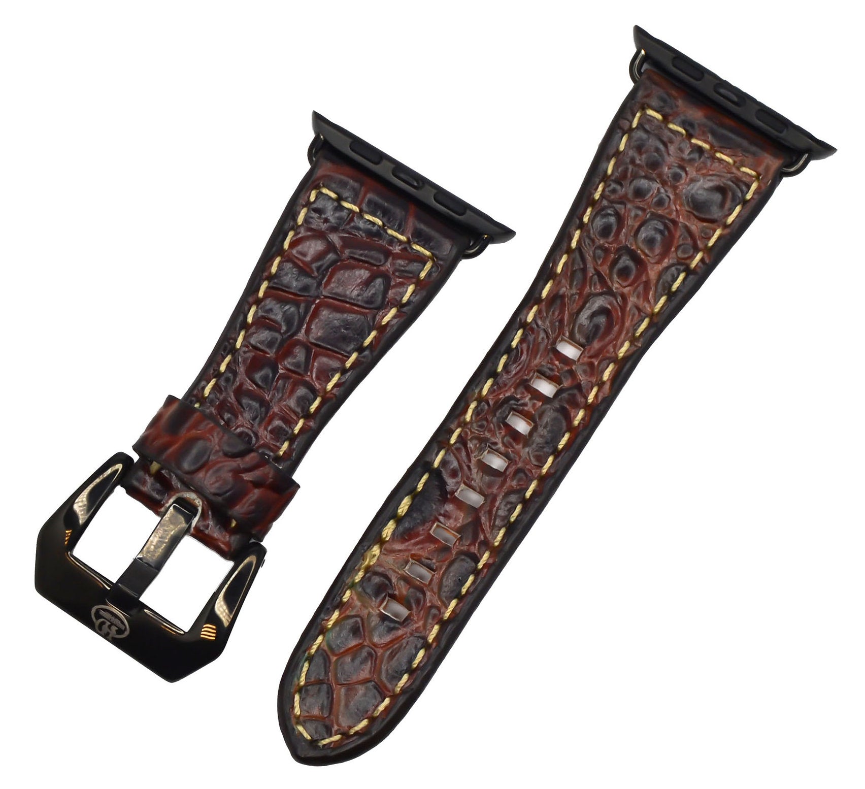 Genuine cowhide, Brown Color, embossed King Croc print watchband sewn with Taupe colored Thread. watches are connected using standard quick release spring bars (20mm and 22mm pins), these are standard size bands and pins, therefore; our 20mm and 22mm bands should be compatible with any watch with a standard lug/pin size of 20 or 22mm.