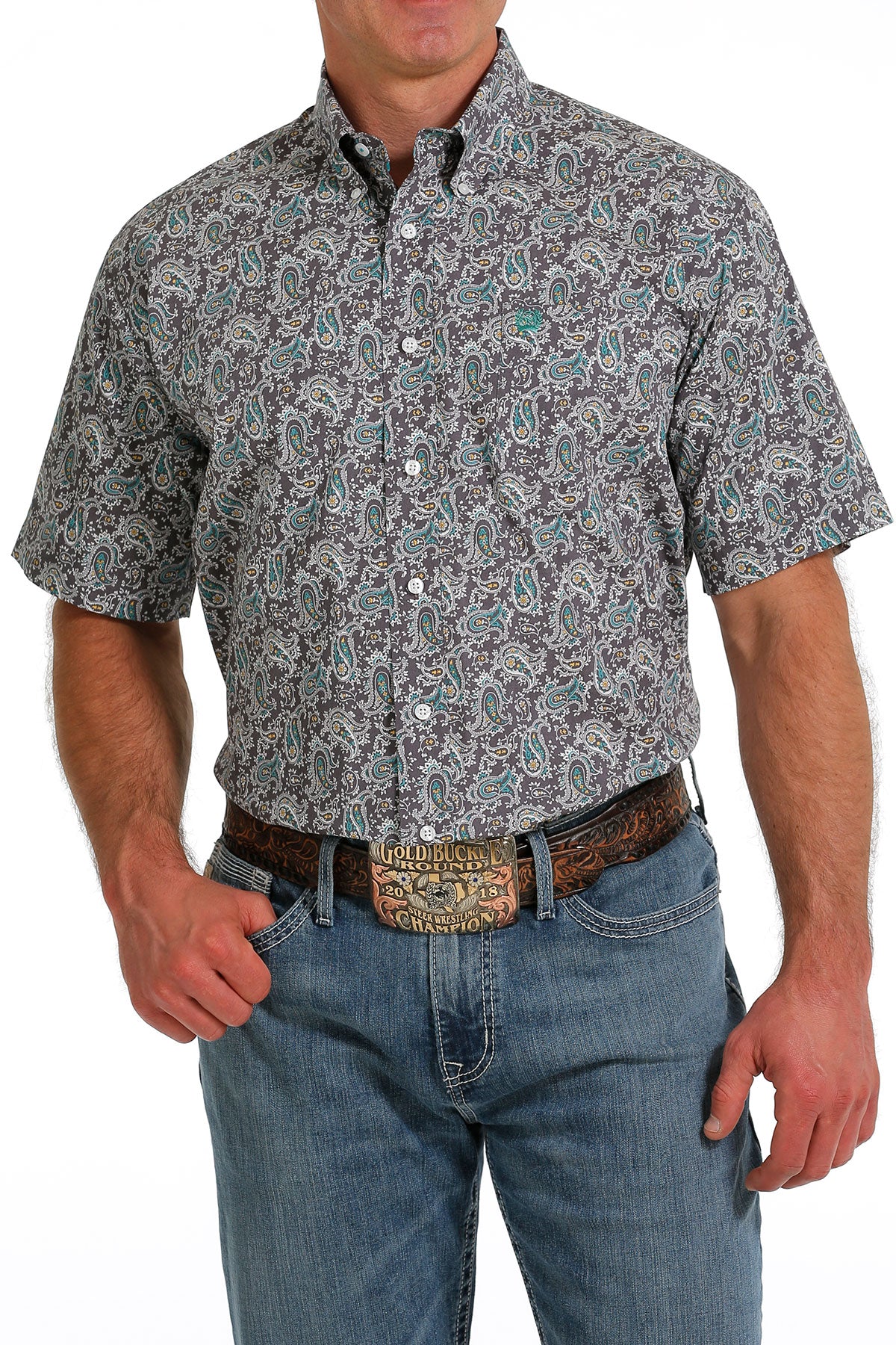 Men's Cinch Paisley Grey/Turquoise Button Down Shirt
