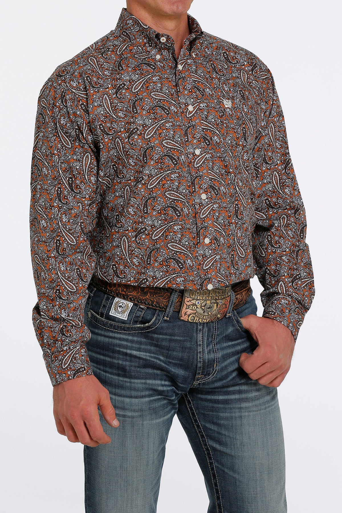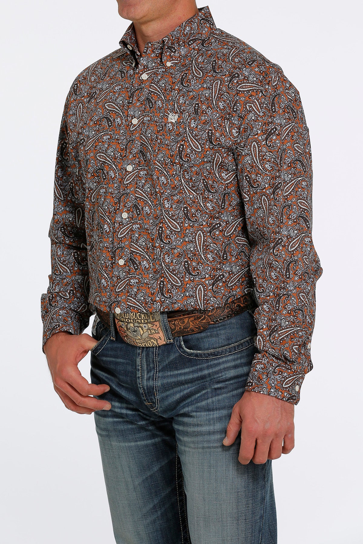 The Mens Cinch rusty Chocolate and Cream Paisley Button Down