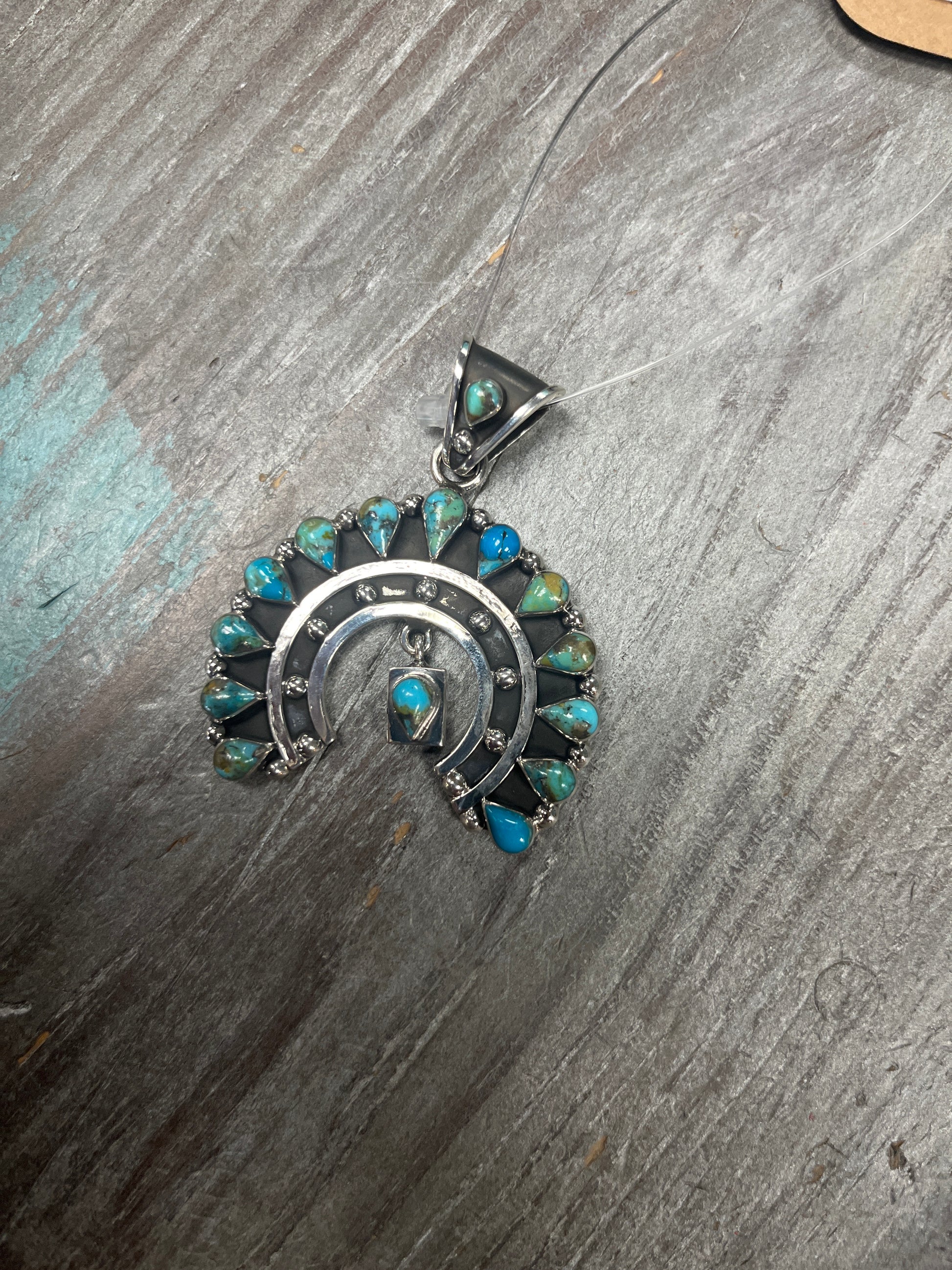Expertly crafted with authentic Navajo design, our Turquoise Navajo Pendant is a one-of-a-kind piece.