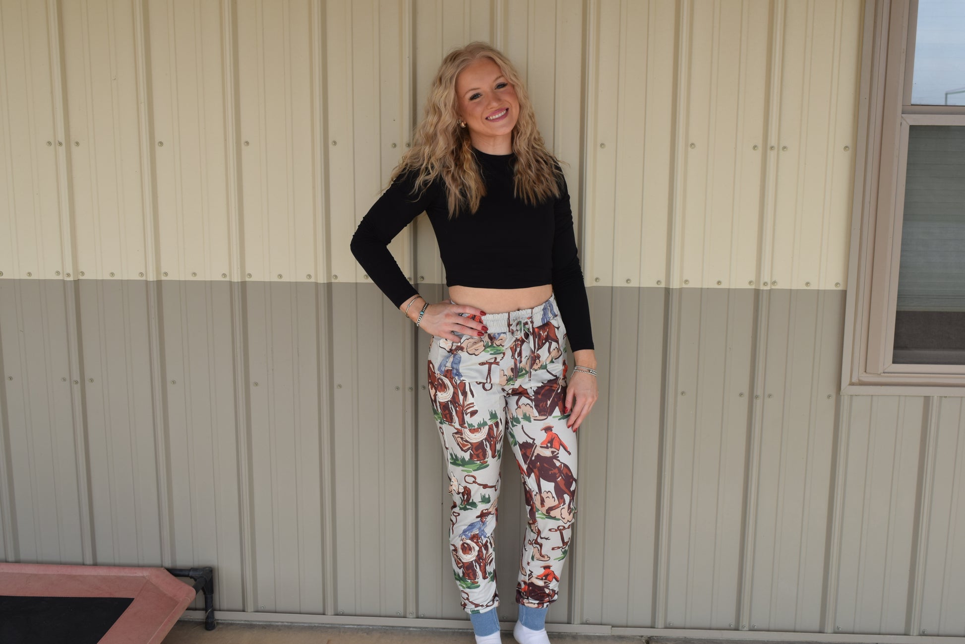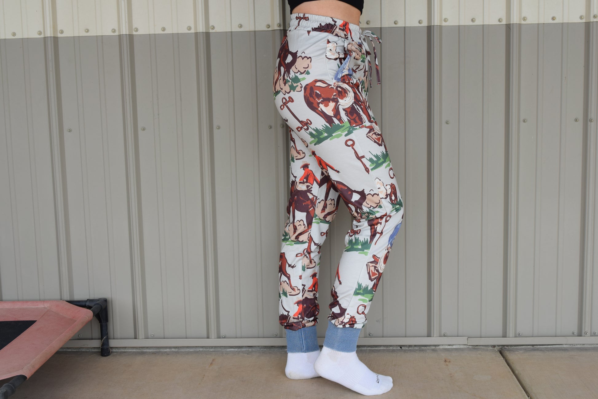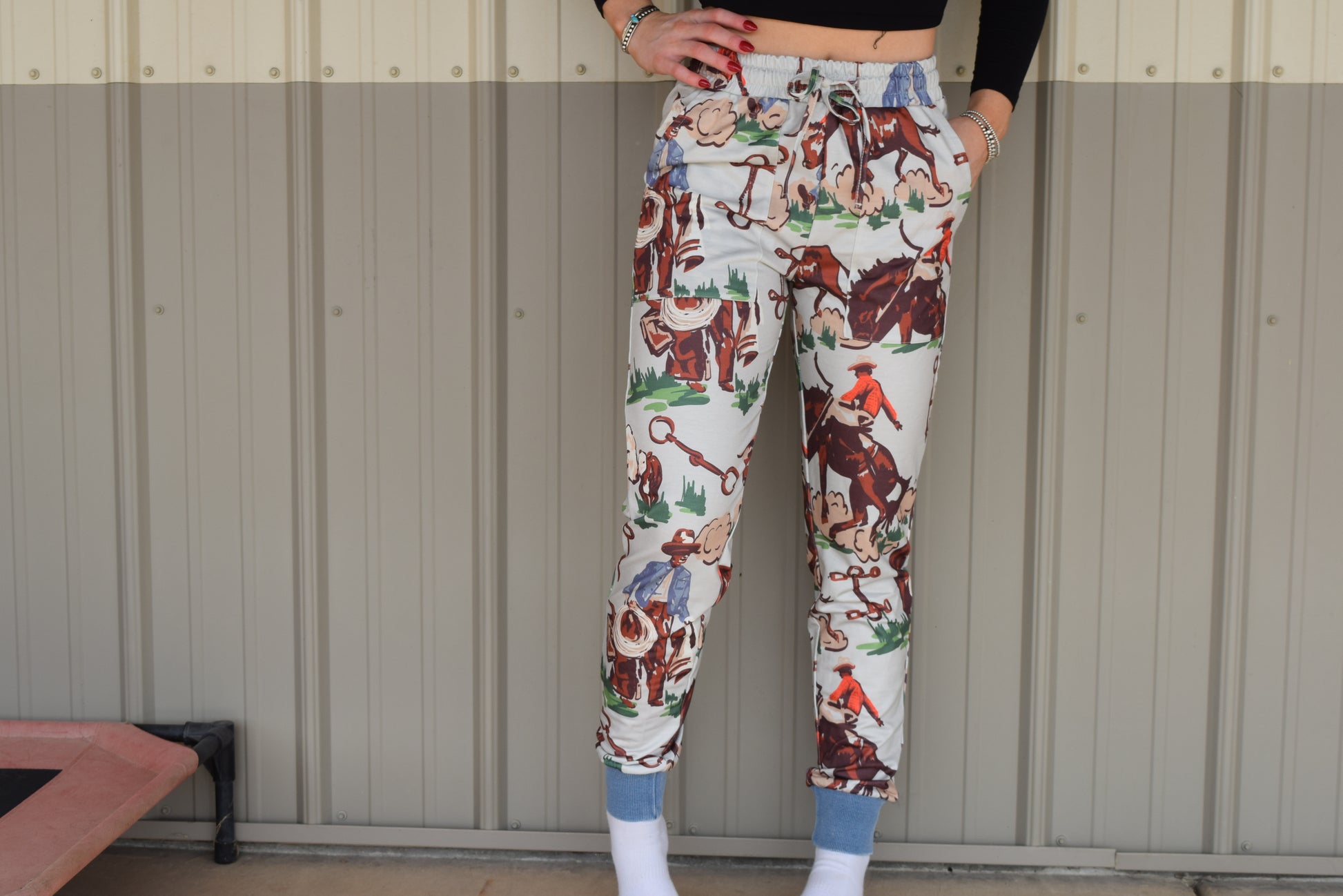 The Vintage Ranch Bark Joggers are giving vintage ranch vibes and peep the denim cuff detail - NOT DENIM but denim like stretch material.