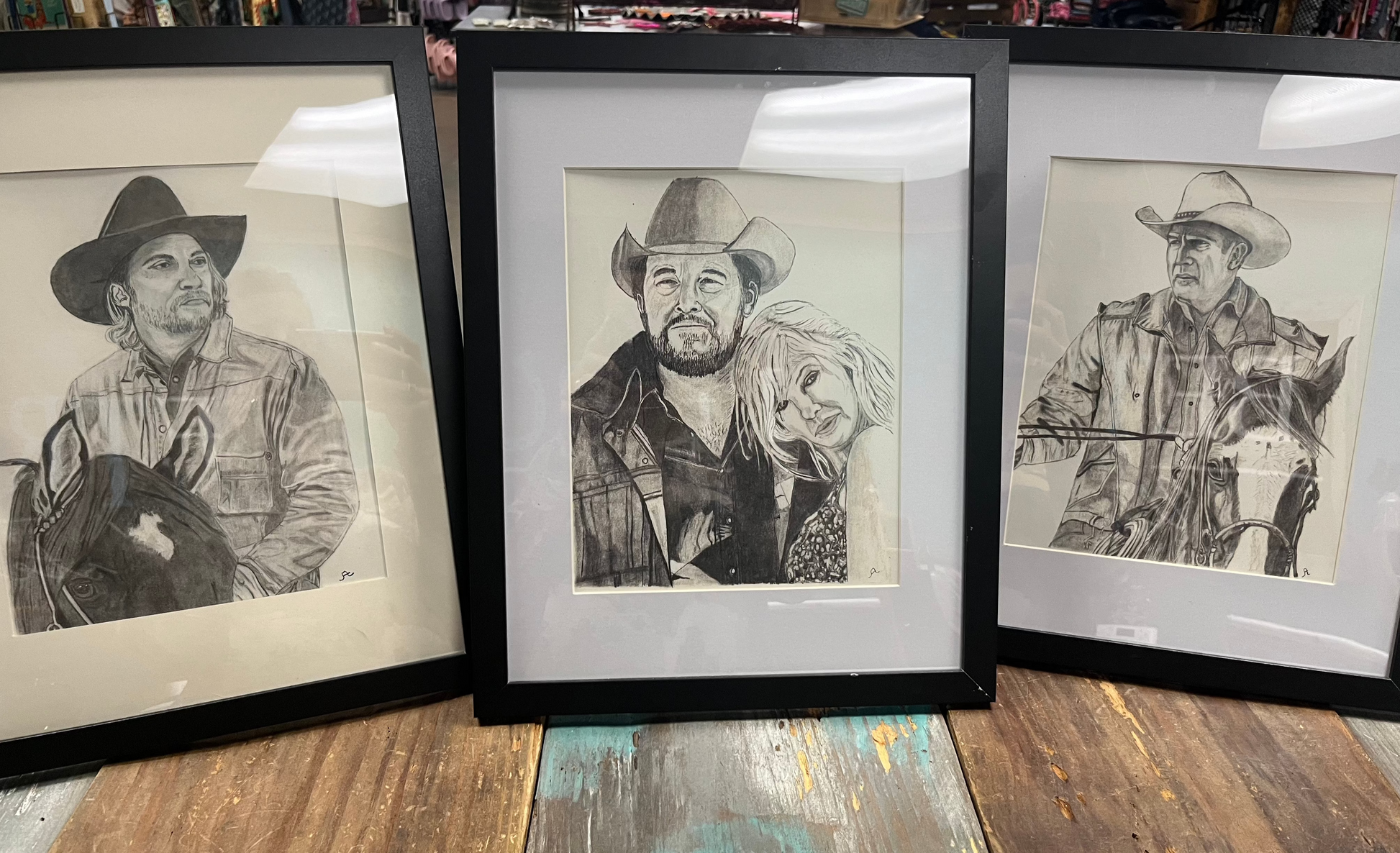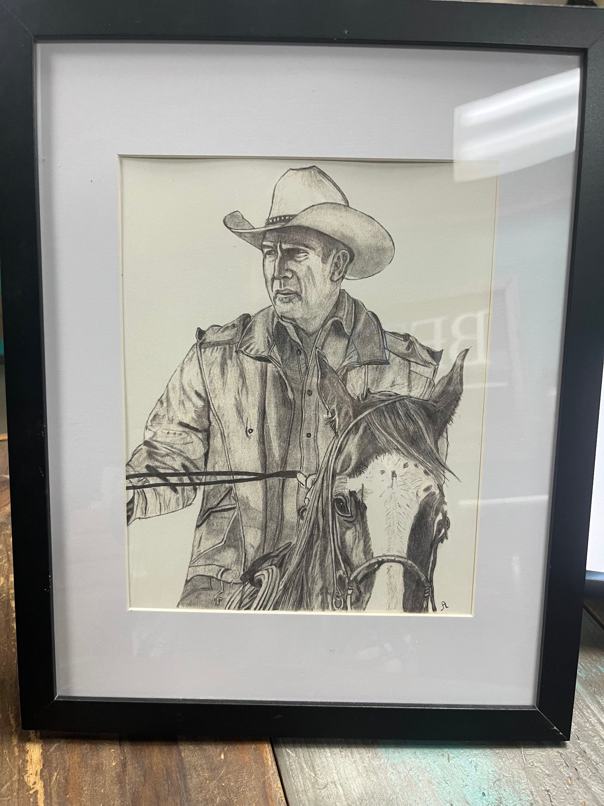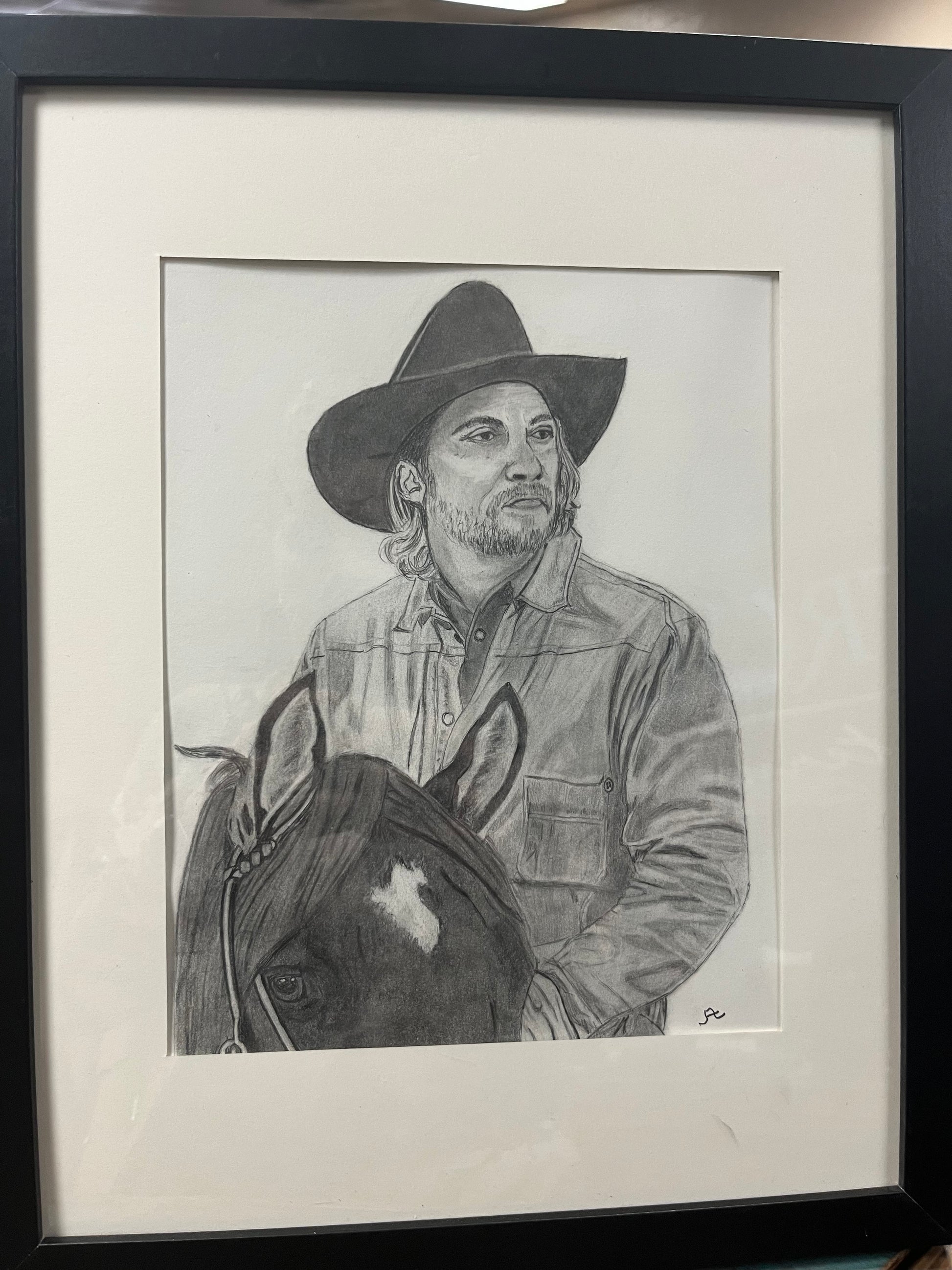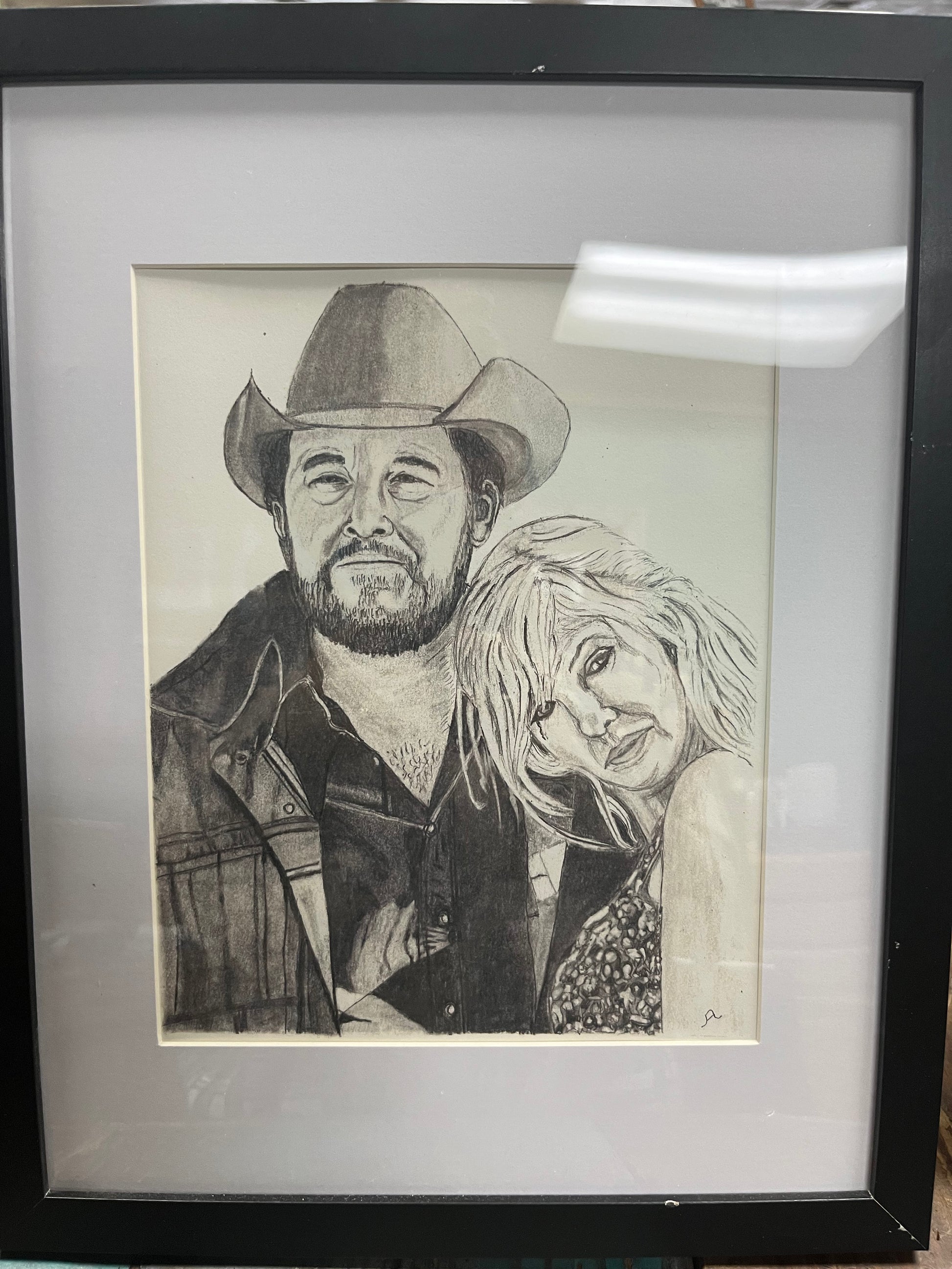 Framed hand drawn with a pencil pictures 8X10 pictures in a 12X15 frame